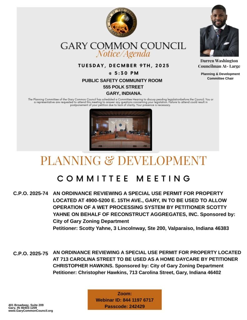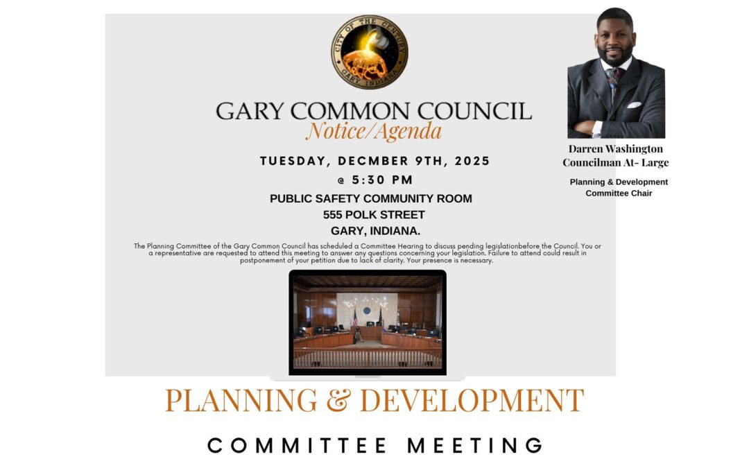 GCC PLANNING & DEVELOPMENT by admin@fakultydesign.com | Dec 8, 2025 | News & Updates, Public Notices | 0 comments TUESDAY, DECEMBER 9TH, 2025 • 5:30 PM PUBLIC SAFETY COMMUNITY ROOM 555 POLK STREET GARY, INDIANA. Submit a Comment Cancel replyYour email address will not be published. Required fields are marked *Comment * Name * Email * Website Save my name, email, and website in this browser for the next time I comment.